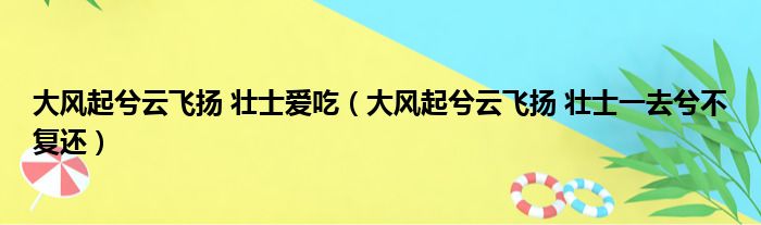 大家好,今天小六子来为大家解答以下的问题,关于大风起兮云飞扬 壮士爱吃,大风起兮云飞扬 壮士一去兮不复还这个很多人还不知道,现在让我们一起来看看吧!