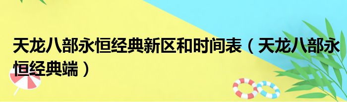 大家好,今天小六子来为大家解答以下的问题,关于天龙八部永恒经典新区和时间表,天龙八部永恒经典端这个很多人还不知道,现在让我们一起来看看吧!