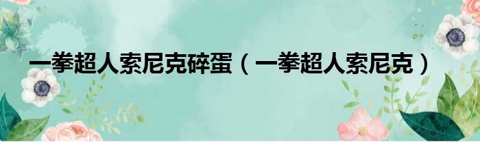 大家好,今天小六子来为大家解答以下的问题,关于一拳超人索尼克碎蛋,一拳超人索尼克这个很多人还不知道,现在让我们一起来看看吧!