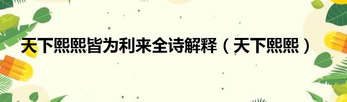 大家好,今天小六子来为大家解答以下的问题,关于天下熙熙皆为利来全诗解释,天下熙熙这个很多人还不知道,现在让我们一起来看看吧!