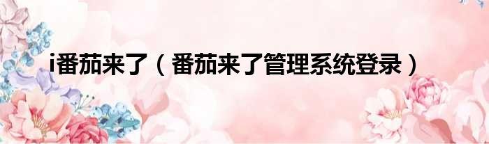 大家好,今天小六子来为大家解答以下的问题,关于i番茄来了,番茄来了管理系统登录这个很多人还不知道,现在让我们一起来看看吧!