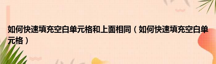 大家好,今天小六子来为大家解答以下的问题,关于如何快速填充空白单元格和上面相同,如何快速填充空白单元格这个很多人还不知道,现在让我们一起来看看吧!