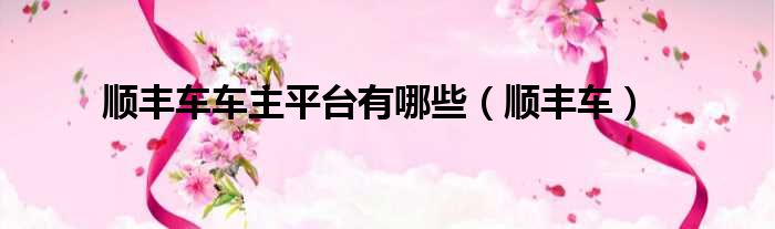 大家好,今天小六子来为大家解答以下的问题,关于顺丰车车主平台有哪些,顺丰车这个很多人还不知道,现在让我们一起来看看吧!