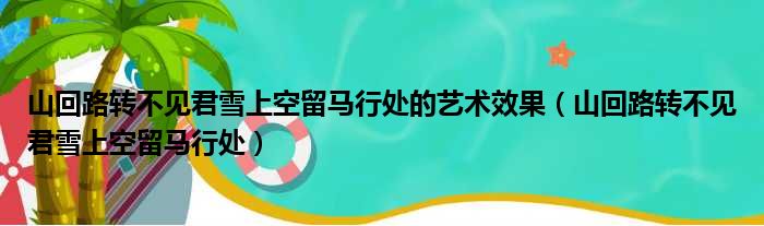 大家好,今天小六子来为大家解答以下的问题,关于山回路转不见君雪上空留马行处的艺术效果,山回路转不见君雪上空留马行处这个很多人还不知道,现在让我们一起来看看吧!