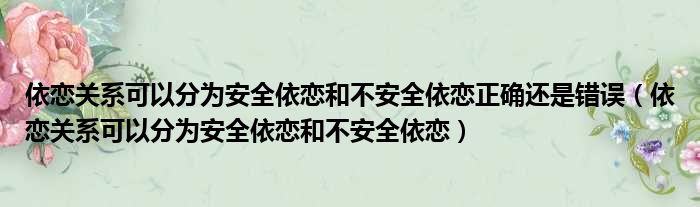 大家好,今天小六子来为大家解答以下的问题,关于依恋关系可以分为安全依恋和不安全依恋正确还是错误,依恋关系可以分为安全依恋和不安全依恋这个很多人还不知道,现在让我们一起来看看吧!