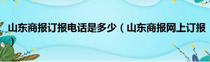 大家好,今天小六子来为大家解答以下的问题,关于山东商报订报电话是多少,山东商报网上订报这个很多人还不知道,现在让我们一起来看看吧!