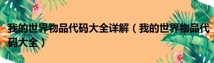 3、 猜你喜欢:我的世界药水合成表大全 药水怎么合成 以上便是小编带来的我的世界物品代码大全介绍,希望能够帮助到小伙伴们。