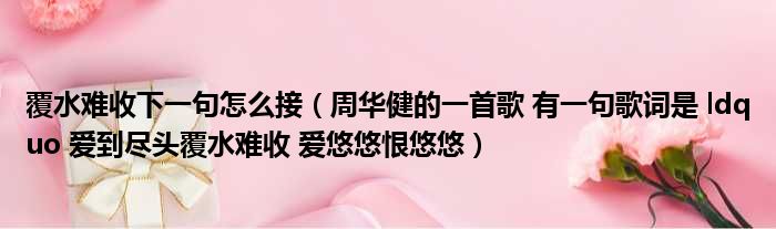 大家好,今天小六子来为大家解答以下的问题,关于覆水难收下一句怎么接,周华健的一首歌 有一句歌词是 ldquo 爱到尽头覆水难收 爱悠悠恨悠悠这个很多人还不知道,现在让我们一起来看看吧!