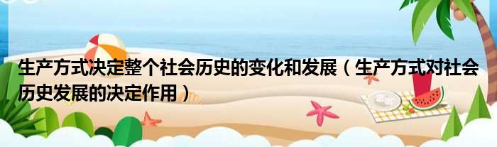 大家好,今天小六子来为大家解答以下的问题,关于生产方式决定整个社会历史的变化和发展,生产方式对社会历史发展的决定作用这个很多人还不知道,现在让我们一起来看看吧!