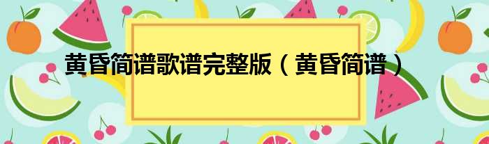 大家好,今天小六子来为大家解答以下的问题,关于黄昏简谱歌谱完整版,黄昏简谱这个很多人还不知道,现在让我们一起来看看吧!