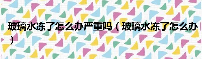 大家好,今天小六子来为大家解答以下的问题,关于玻璃水冻了怎么办严重吗,玻璃水冻了怎么办这个很多人还不知道,现在让我们一起来看看吧!