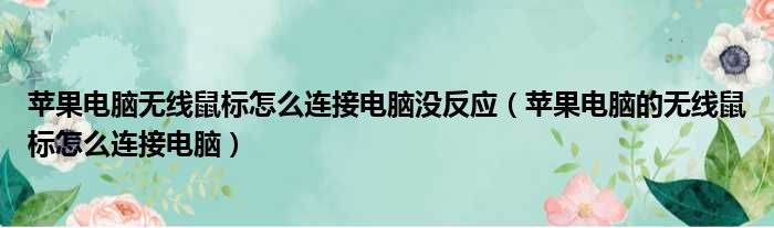 大家好,今天小六子来为大家解答以下的问题,关于苹果电脑无线鼠标怎么连接电脑没反应,苹果电脑的无线鼠标怎么连接电脑这个很多人还不知道,现在让我们一起来看看吧!