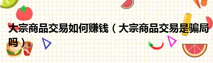 大家好,今天小六子来为大家解答以下的问题,关于大宗商品交易如何赚钱,大宗商品交易是骗局吗这个很多人还不知道,现在让我们一起来看看吧!