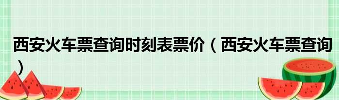 大家好,今天小六子来为大家解答以下的问题,关于西安火车票查询时刻表票价,西安火车票查询这个很多人还不知道,现在让我们一起来看看吧!