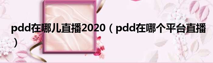 大家好,今天小六子来为大家解答以下的问题,关于pdd在哪儿直播2020,pdd在哪个平台直播这个很多人还不知道,现在让我们一起来看看吧!