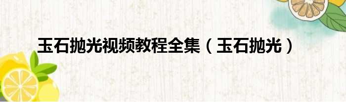 大家好,今天小六子来为大家解答以下的问题,关于玉石抛光视频教程全集,玉石抛光这个很多人还不知道,现在让我们一起来看看吧!