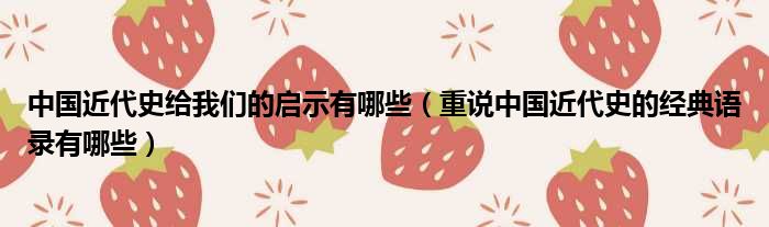 大家好,今天小六子来为大家解答以下的问题,关于中国近代史给我们的启示有哪些,重说中国近代史的经典语录有哪些这个很多人还不知道,现在让我们一起来看看吧!