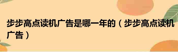 大家好,今天小六子来为大家解答以下的问题,关于步步高点读机广告是哪一年的,步步高点读机广告这个很多人还不知道,现在让我们一起来看看吧!