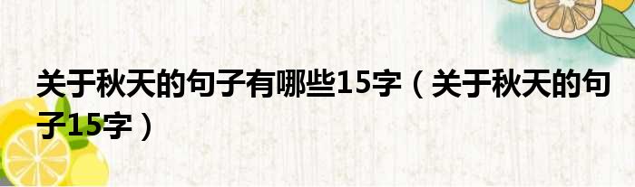 大家好,今天小六子来为大家解答以下的问题,关于关于秋天的句子有哪些15字,关于秋天的句子15字这个很多人还不知道,现在让我们一起来看看吧!
