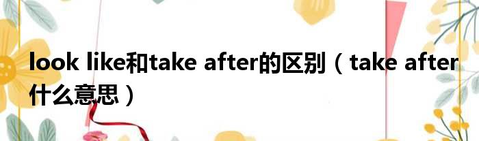 大家好,今天小六子来为大家解答以下的问题,关于look like和take after的区别,take after什么意思这个很多人还不知道,现在让我们一起来看看吧!