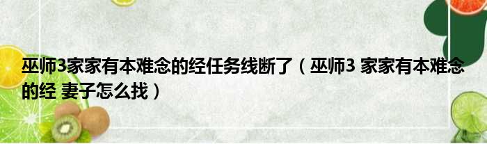 大家好,今天小六子来为大家解答以下的问题,关于巫师3家家有本难念的经任务线断了,巫师3 家家有本难念的经 妻子怎么找这个很多人还不知道,现在让我们一起来看看吧!