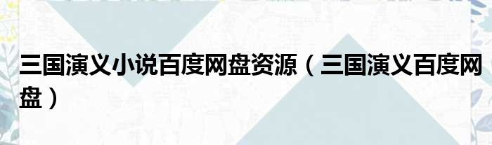 大家好,今天小六子来为大家解答以下的问题,关于三国演义小说百度网盘资源,三国演义百度网盘这个很多人还不知道,现在让我们一起来看看吧!