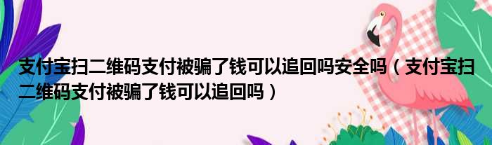 大家好,今天小六子来为大家解答以下的问题,关于支付宝扫二维码支付被骗了钱可以追回吗安全吗,支付宝扫二维码支付被骗了钱可以追回吗这个很多人还不知道,现在让我们一起来看看吧!