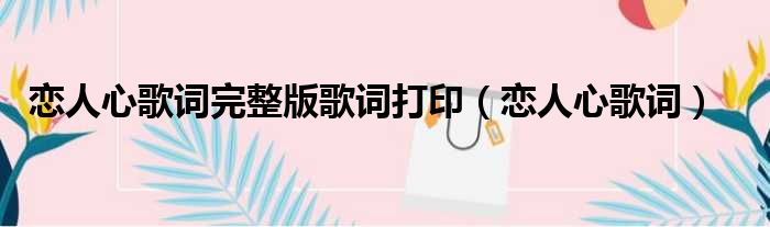 大家好,今天小六子来为大家解答以下的问题,关于恋人心歌词完整版歌词打印,恋人心歌词这个很多人还不知道,现在让我们一起来看看吧!
