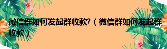 大家好,今天小六子来为大家解答以下的问题,关于微信群如何发起群收款?,微信群如何发起群收款这个很多人还不知道,现在让我们一起来看看吧!