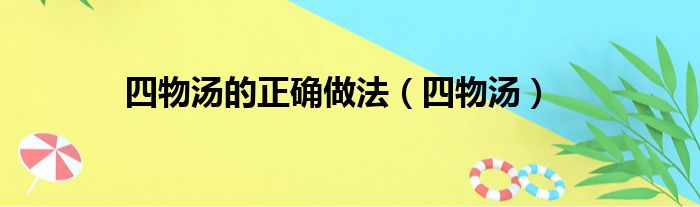 大家好,今天小六子来为大家解答以下的问题,关于四物汤的正确做法,四物汤这个很多人还不知道,现在让我们一起来看看吧!