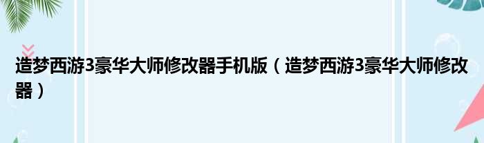 大家好,今天小六子来为大家解答以下的问题,关于造梦西游3豪华大师修改器手机版,造梦西游3豪华大师修改器这个很多人还不知道,现在让我们一起来看看吧!