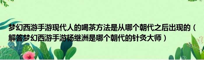 大家好,今天小六子来为大家解答以下的问题,关于梦幻西游手游现代人的喝茶方法是从哪个朝代之后出现的,解答梦幻西游手游杨继洲是哪个朝代的针灸大师这个很多人还不知道,现在让我们一起来看看吧!