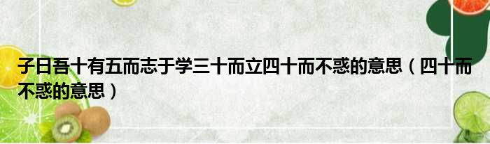 大家好,今天小六子来为大家解答以下的问题,关于子日吾十有五而志于学三十而立四十而不惑的意思,四十而不惑的意思这个很多人还不知道,现在让我们一起来看看吧!
