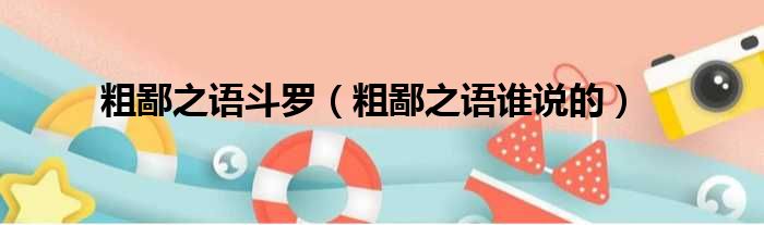 大家好,今天小六子来为大家解答以下的问题,关于粗鄙之语斗罗,粗鄙之语谁说的这个很多人还不知道,现在让我们一起来看看吧!