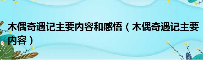 大家好,今天小六子来为大家解答以下的问题,关于木偶奇遇记主要内容和感悟,木偶奇遇记主要内容这个很多人还不知道,现在让我们一起来看看吧!