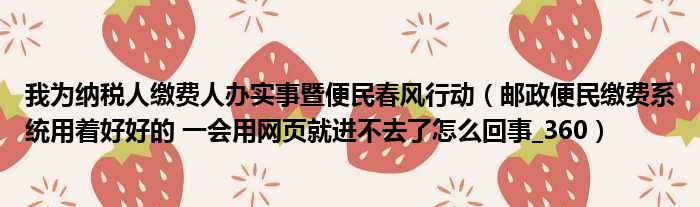 大家好,今天小六子来为大家解答以下的问题,关于我为纳税人缴费人办实事暨便民春风行动,邮政便民缴费系统用着好好的 一会用网页就进不去了怎么回事_360这个很多人还不知道,现在让我们一起来看看吧!
