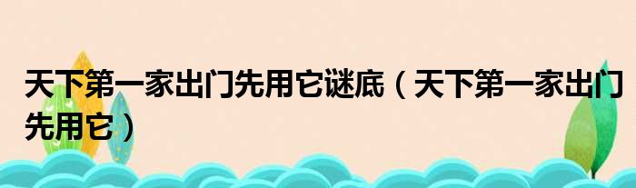 大家好,今天小六子来为大家解答以下的问题,关于天下第一家出门先用它谜底,天下第一家出门先用它这个很多人还不知道,现在让我们一起来看看吧!