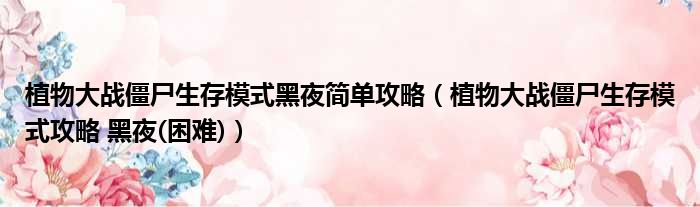 2、今天说的是植物大战僵尸生存模式攻略黑夜(困难)怎么过?一起来看看吧!植物大战僵尸生存模式攻略 黑夜(困难)第一关所选卡片,小蘑菇和西瓜是最好的选择,先种2排不要钱的,主力要发展经济第一波来了,用倭瓜秒杀带铁桶的当有足够的阳光,过一千以后,就种西瓜吧,隔着中冰镇西瓜第一关一排西瓜就可以过关了第二关第三排放忧郁,主要目的是防巨人继续造西瓜,换双头的向日葵第三关来气球,西瓜不能对空,所以要选择风扇,把气球吹走拼命的造西瓜,等过关。