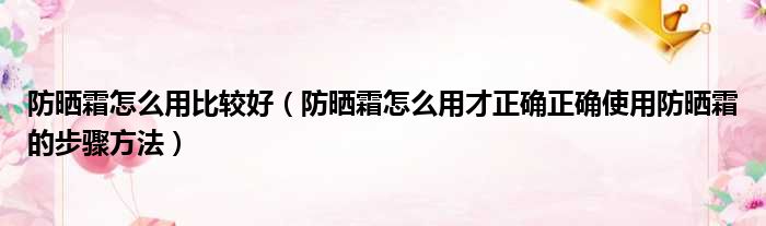 大家好,今天小六子来为大家解答以下的问题,关于防晒霜怎么用比较好,防晒霜怎么用才正确正确使用防晒霜的步骤方法这个很多人还不知道,现在让我们一起来看看吧!