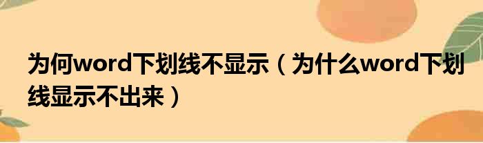 大家好,今天小六子来为大家解答以下的问题,关于为何word下划线不显示,为什么word下划线显示不出来这个很多人还不知道,现在让我们一起来看看吧!