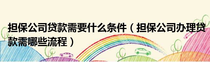 大家好,今天小六子来为大家解答以下的问题,关于担保公司贷款需要什么条件,担保公司办理贷款需哪些流程这个很多人还不知道,现在让我们一起来看看吧!