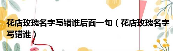 大家好,今天小六子来为大家解答以下的问题,关于花店玫瑰名字写错谁后面一句,花店玫瑰名字写错谁这个很多人还不知道,现在让我们一起来看看吧!