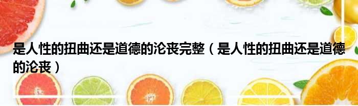 大家好,今天小六子来为大家解答以下的问题,关于是人性的扭曲还是道德的沦丧完整,是人性的扭曲还是道德的沦丧这个很多人还不知道,现在让我们一起来看看吧!