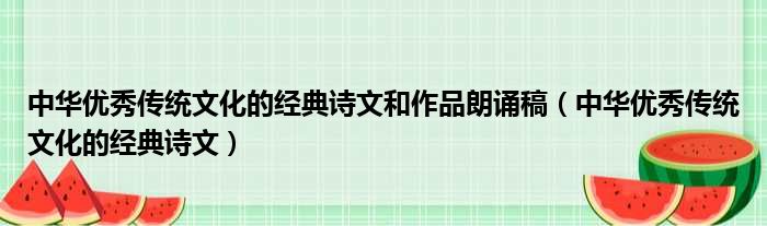 大家好,今天小六子来为大家解答以下的问题,关于中华优秀传统文化的经典诗文和作品朗诵稿,中华优秀传统文化的经典诗文这个很多人还不知道,现在让我们一起来看看吧!