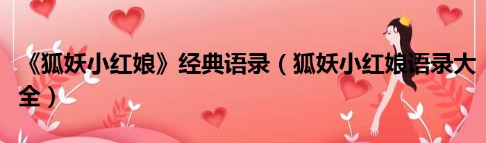 大家好,今天小六子来为大家解答以下的问题,关于《狐妖小红娘》经典语录,狐妖小红娘语录大全这个很多人还不知道,现在让我们一起来看看吧!