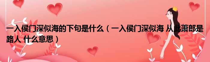 大家好,今天小六子来为大家解答以下的问题,关于一入侯门深似海的下句是什么,一入侯门深似海 从此萧郎是路人 什么意思这个很多人还不知道,现在让我们一起来看看吧!