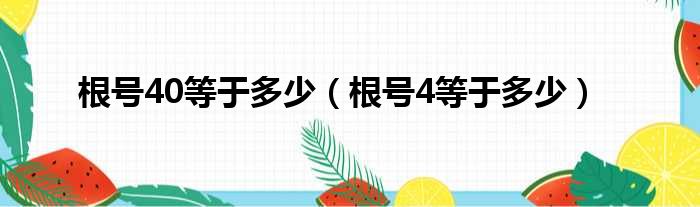 大家好,今天小六子来为大家解答以下的问题,关于根号40等于多少,根号4等于多少这个很多人还不知道,现在让我们一起来看看吧!