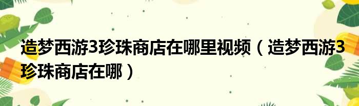 大家好,今天小六子来为大家解答以下的问题,关于造梦西游3珍珠商店在哪里视频,造梦西游3珍珠商店在哪这个很多人还不知道,现在让我们一起来看看吧!