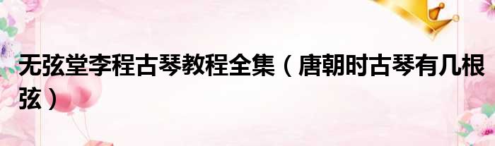 大家好,今天小六子来为大家解答以下的问题,关于无弦堂李程古琴教程全集,唐朝时古琴有几根弦这个很多人还不知道,现在让我们一起来看看吧!