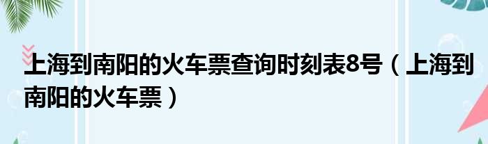 大家好,今天小六子来为大家解答以下的问题,关于上海到南阳的火车票查询时刻表8号,上海到南阳的火车票这个很多人还不知道,现在让我们一起来看看吧!